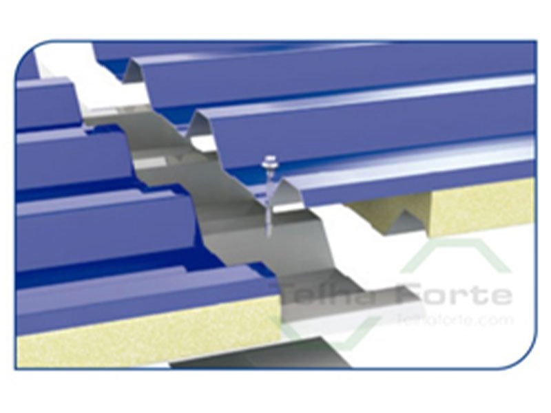 Esse sistema é feito de acordo com a medida do encaixe que o cliente deseja, não existe um padrão, porém costumamos recomendar mínimo de 20 a 30 centímetros no encaixe superior. No caso da Telha Sanduíche trapezoidal as duas faces e a na Telha Forro é possível fazer o encaixe superior e inferior como mostra a imagem, porém, na Telha Forro grande parte dos profissionais preferem fazer o encaixe somente na parte superior e deixa a parte inferior de topo, fica a critério do cliente. Já nas Telhas Face Felt e Semi Sanduíche, só é possível fazer o encaixe na parte superior.