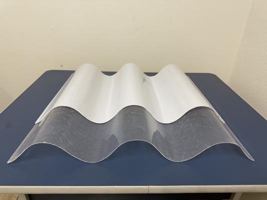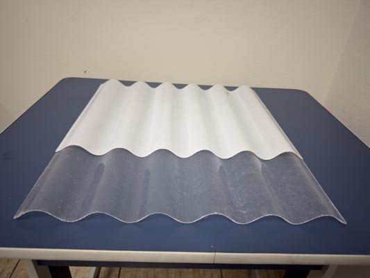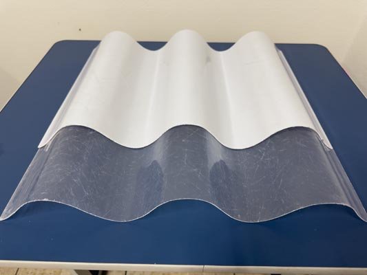 Nossas telhas translúcidas são fabricadas em fibra de vidro com resina de poliéster e véu de proteção, podem ser fornecidas nas espessuras de 1,00mm 1,20mm, 1,50mm e 2,00mm. Elas podem ser fabricadas em cores como verde, amarelo e azul, e as mais comuns incolor e branca leitosa, sendo está última a mais vendida, além de ter uma melhor durabilidade é a que tem menor índice de transmitância térmica, confira na tabela: